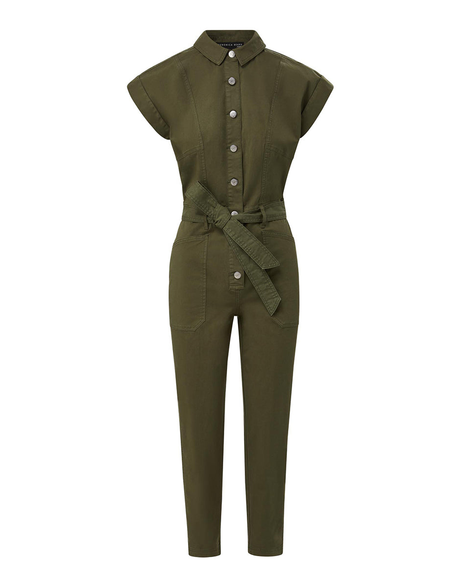 Few things are as easy as a jumpsuit — it's the ultimate one-and-done piece. The Eakin is cut from a lightweight cotton. with a good amount of stretch for flexibility and comfort. Front patch pockets and it's army green tone give it a utilitarian-tomboy appeal while a waist-defining belt and pre-rolled cap sleeves add a femme edge. Slip on some clogs and you're ready out the door.