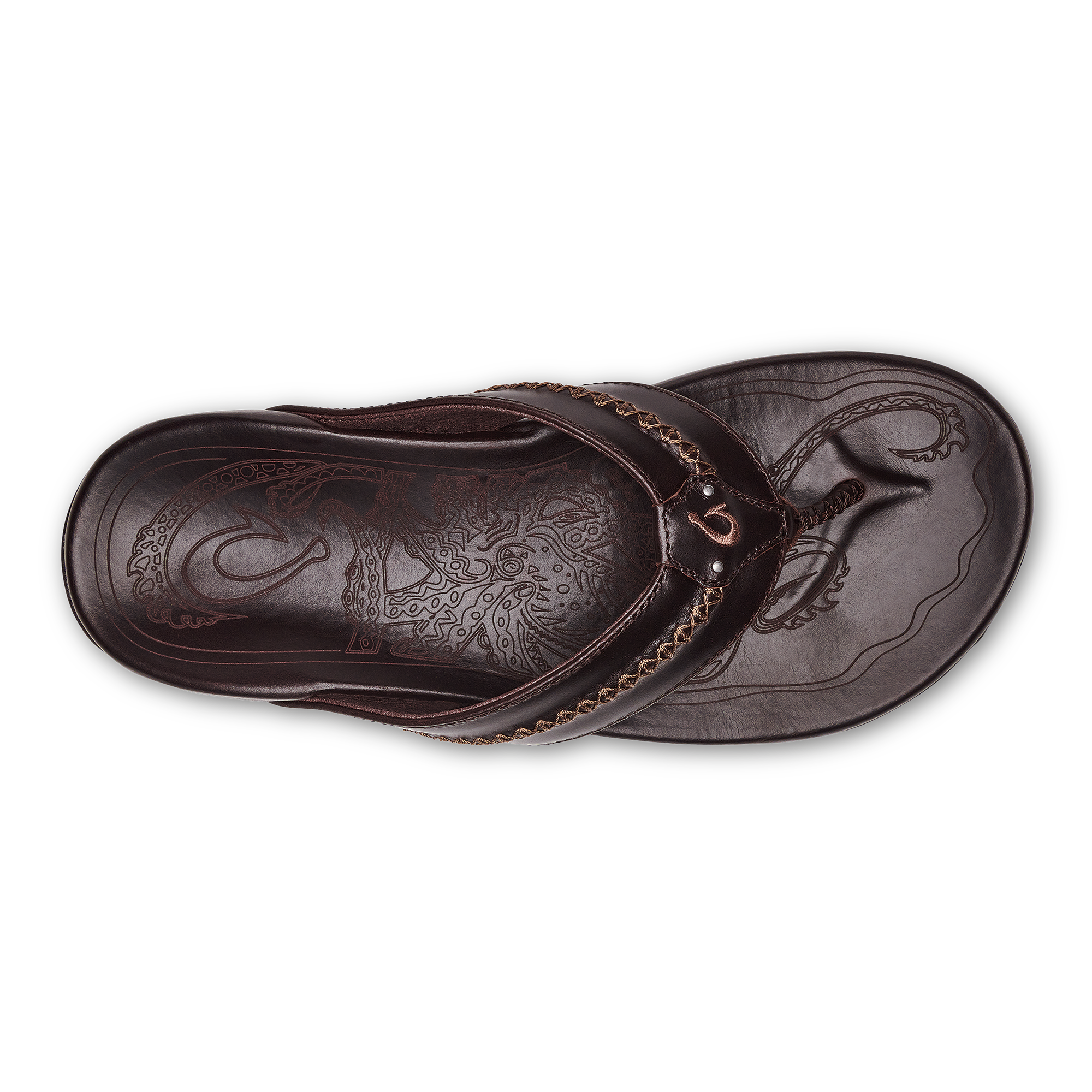 OluKai Craftsmanship: Includes octopus-inspired laser-etched artwork on the footbed. canoe lash whipstitching. and an embroidered logo for a distinctive touch.