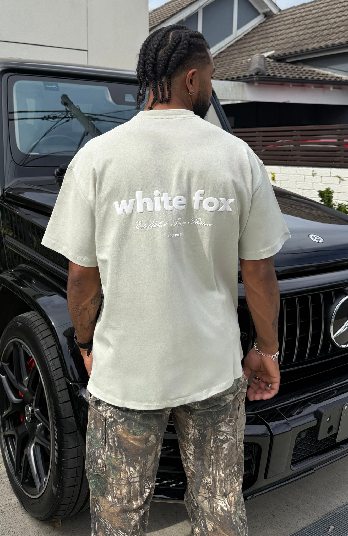 The No Mercy Oversized Tee Sage has boyfriend‑tee vibes in the best way. Features a classic crew neckline. relaxed short sleeves. a laid‑back oversized silhouette. and bold puff print White Fox text side front and centre back for signature street‑style flair. Style it with your favourite denim and sunnies to rock the street as the coolest matching couple.