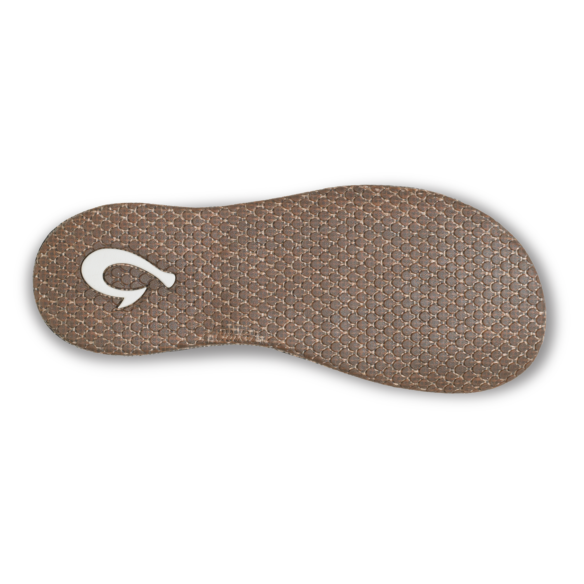 OluKai Craftsmanship: The sandal showcases double-row saddle-inspired micro stitching on the footbed. a handsewn leather toe post. and a cast metal hook logo for distinctive craftsmanship.