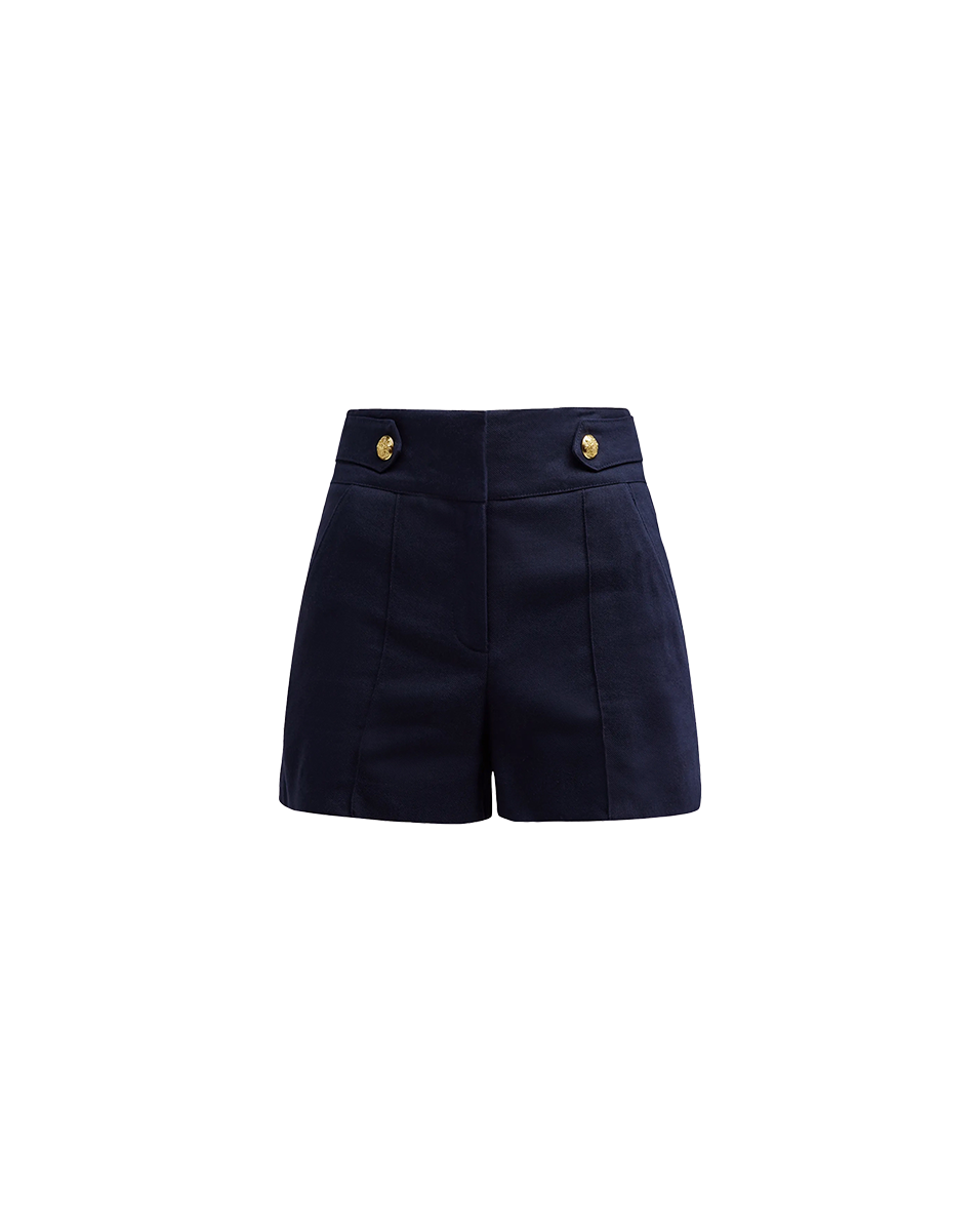 Part of our core collection. the Runo short is crafted from an Italian stretch-linen blend. This high-rise. relaxed piece also features front pleats and decorative crest buttons at the waistline. Wear with its coordinating jacket for a summer-suiting moment no one will forget.